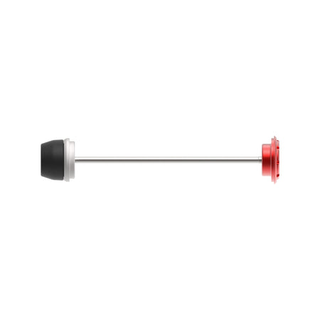 EP Rear Spindle Bobbins for the MV Agusta Turismo Veloce 800 offer protection for the expensive swing arm and sprocket carrier. If the unfortunate occurs, the bobbin should receive impact first. The innovative bobbin design allows the nylon outer to rotate above the aluminium core to reduce stress on the wheel. On the exhaust side, an attractive red-anodised hub stop secures the spindle rod in place.